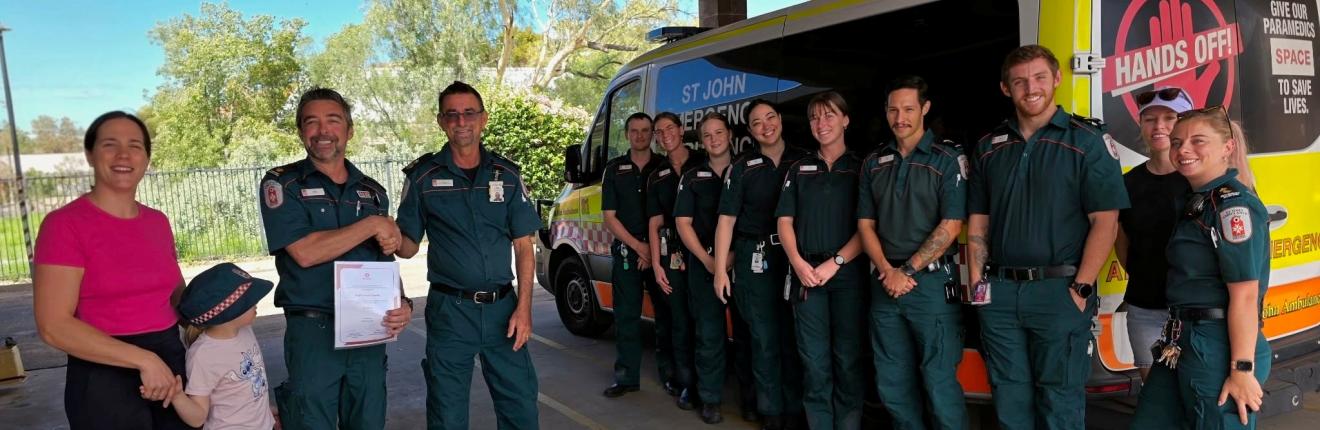 As Matt marked 20 years with St John NT surrounded by his Alice Springs team, wife and daughter, Craig Garraway offered congratulations on behalf of the organisation: “Matt, you have given 20 years of outstanding service and become a constant in Alice Springs. Your dedication, professionalism and care have made a real difference to our patients, colleagues, and the community. We are proud to have you with us, both saving and shaping lives.”