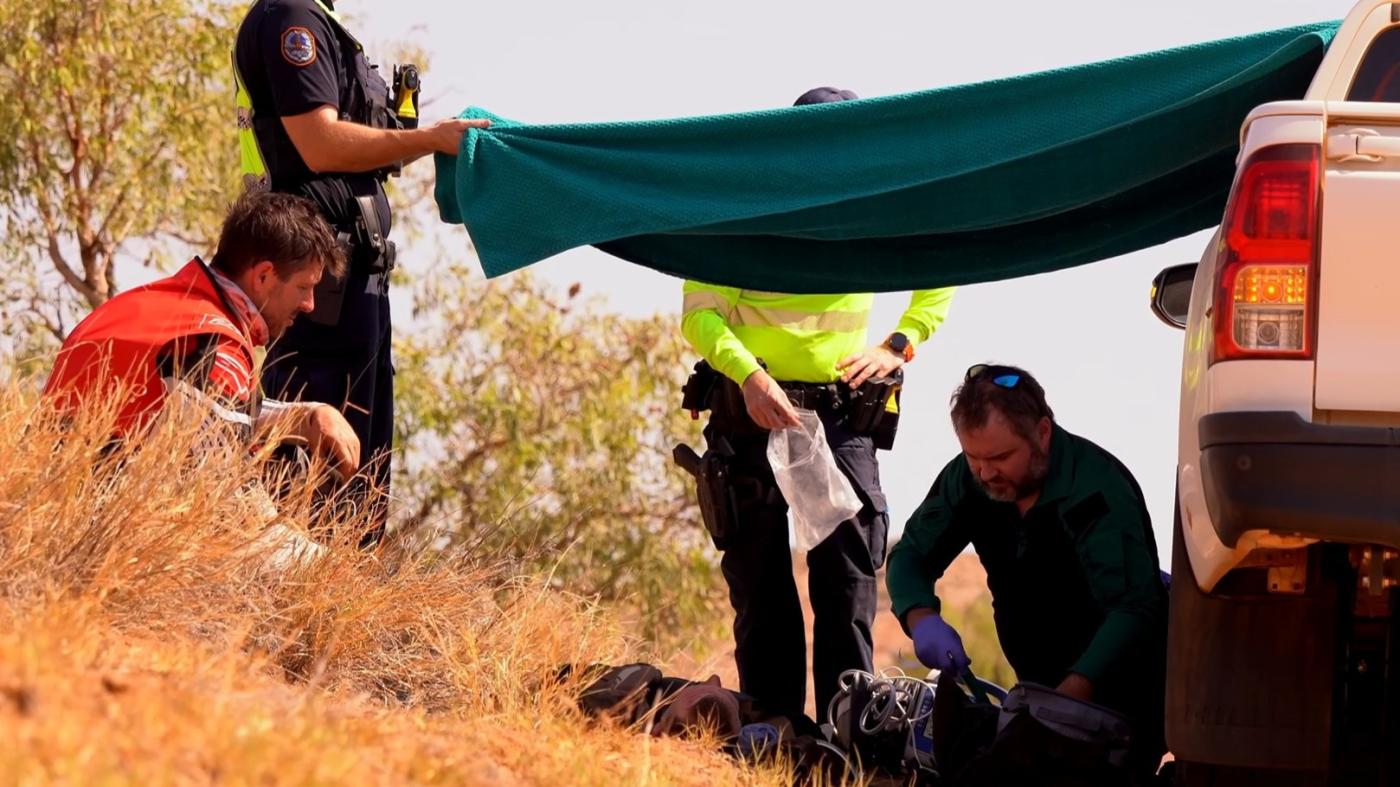 The pair had been riding in convoy roughly four-and-a-half hours from Alice Springs when McLeay was thrown headfirst over the handlebars, sustaining serious shoulder injuries and potential head and spinal injuries.